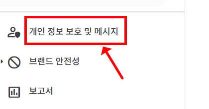1. 애드센스 홈 로그인 후 좌측 메뉴에서 '개인 정보 보호 및 메시지' 클릭.